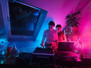 Their sets move between remixes, nostalgic edits, and pulsing sound – sweat, groove, and a touch of chaos.