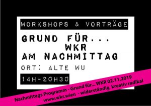 Liebe alle – wir freuen uns nun auch, endlich unser Workshopprogramm in vollem Umfang präsentieren zu können: ab 14h wird die Alte WU für euch geöffnet sein. Wir haben diesmal, neben einem tollen Kinderporgramm, wieder einige Gäste eingeladen und freuen …